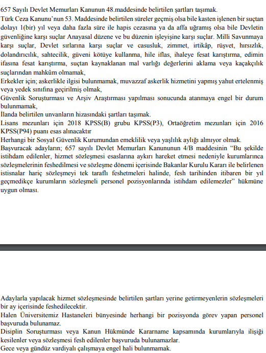 38 HEMŞİRE alımı için adayların -Sağlık Meslek Lisesi Hemşirelik alanından mezun olması gerekmektedir.