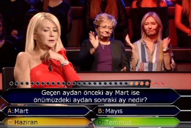 Kim Milyoner Olmak İster 'de yarışmacıya ''Geçen aydan önceki ay Mart ise önümüzdeki aydan sonraki ay nedir?" sorusu yönlendirildi. Bu yarışmacı ise soruya yanlış cevap verince ilginç bir tepki verdi.