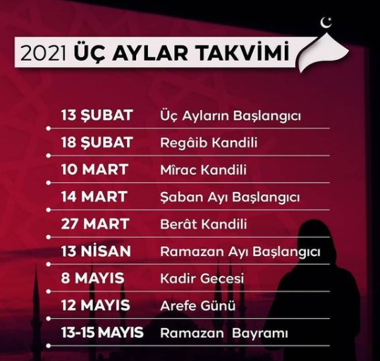 Mübarek Üç Aylar Başlıyor. Recep ayı 13 Şubat 2021 günü başlıyor. Peki Ramazan ayı ne zaman başlayacak? İlk oruç ne zaman tutulacak? İşte üç aylar takvimi ve en güzel üç aylar başlangıcı mesajları.