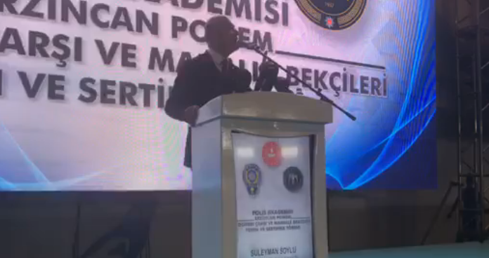 Erzincan POMEM 1. Dönem Çarşı ve Mahalle Bekçileri Yemin ve Sertifika Törenine katılan İçişleri Bakanı Süleyman Soylu, bekçi alımı tarihini kamuoyuna duyurdu.