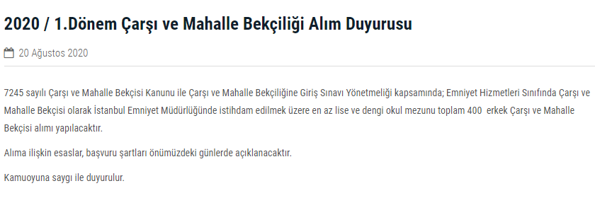 Akademinin yayımladığı duyuruya bakacak olursak sadece İstanbul şehrinde istihdam etmek züere 400 bekçi alımı yapılacağı görüldü. Diğer iller için bir duyuru yayımlanmadı.