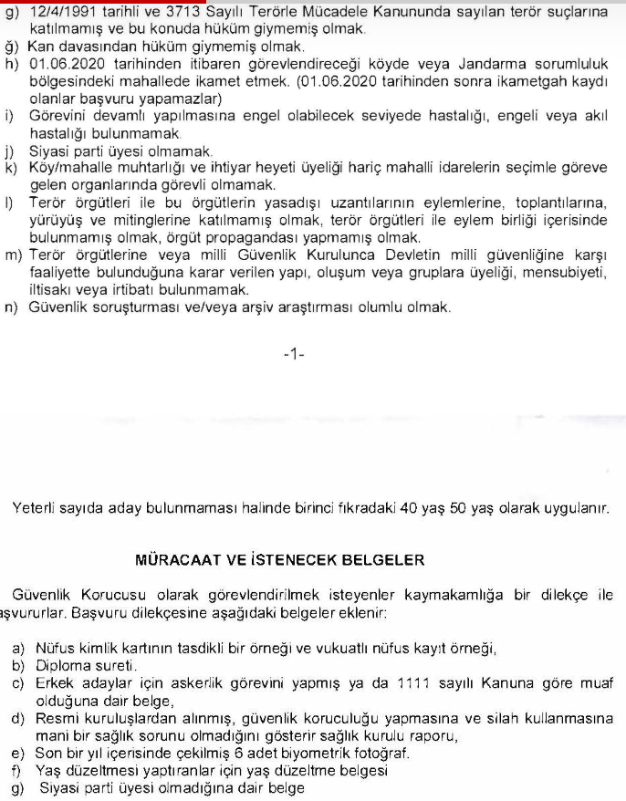 30 Korucu alımına başvuru yapacak adayların aşağıdaki şartları taşıması gerekmektedir: