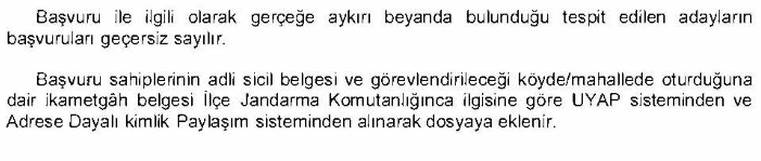 10. Hâlihazırda görevlendirileceği köyde veya jandarma sorumluluk bölgesindeki mahallede ikamet etmek,