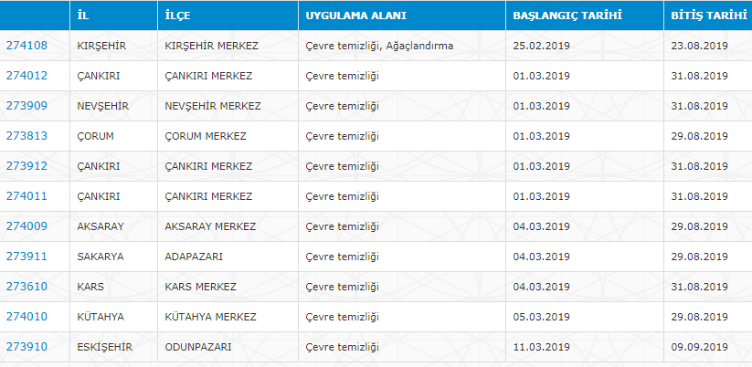 Türkiye İş Kurumu resmi internet sayfası aracılığıyla ilan yayımlandı. Yayımlanan ilanlarda Toplum Yararına Program kapsamında geçici personel alımı yapılacak.