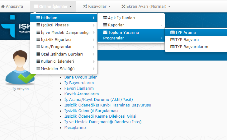 Açılan sayfada , sol tarafta bulunan TYP numarası kısmına tıklayın ve başvurunuzu buradan yapın.