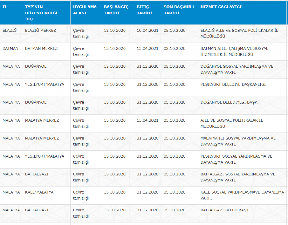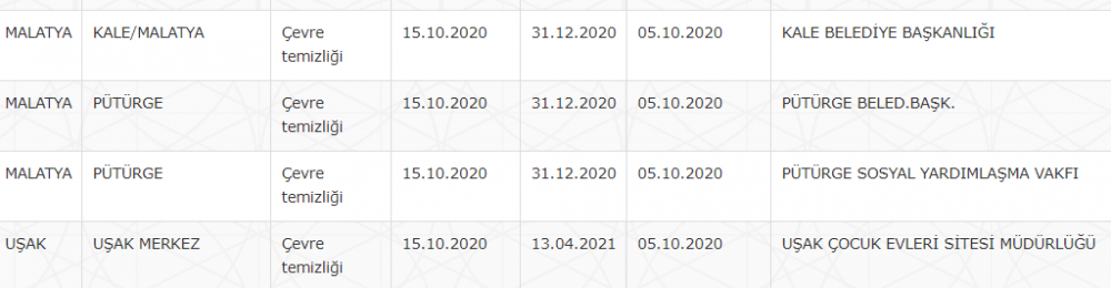 İŞKUR Toplum Yararına Çalışma Programı ilanları kısmından yayımlanan duyurulara baktığımızda aşağıdaki kurumlara personel alıı yapıldığı görüldü: