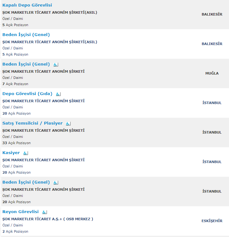 Şok , Bim ve A101 marketler İŞKUR'dan çok sayıda personel alımı yapıyor.