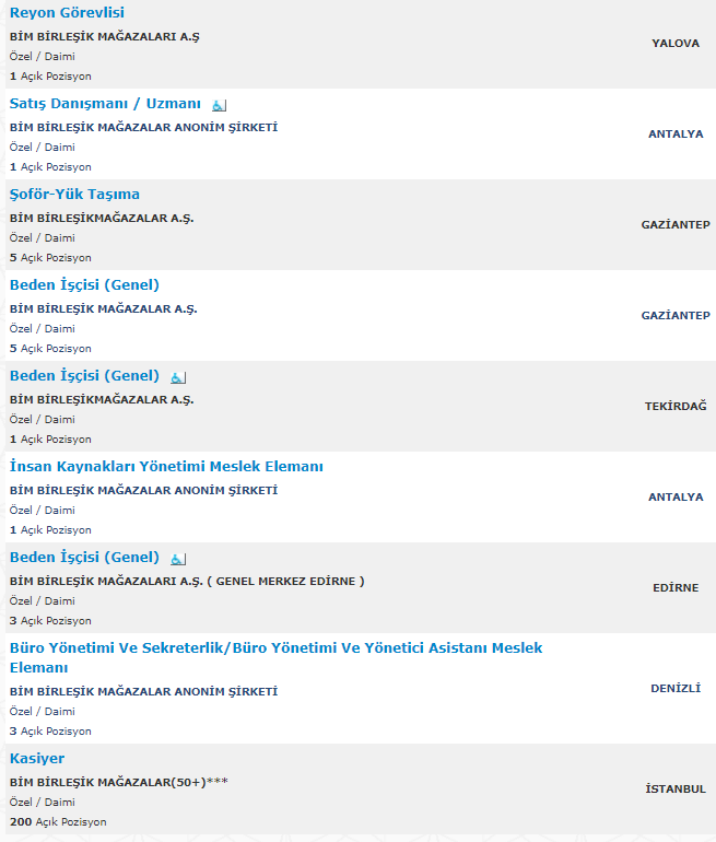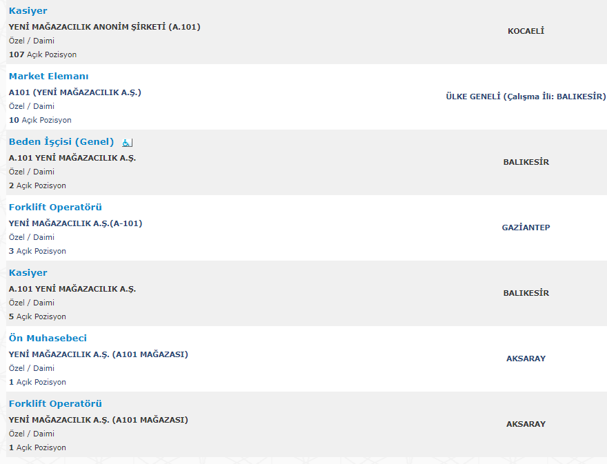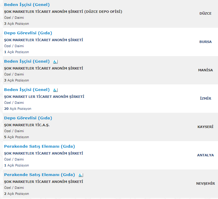 Türkyie İş Kurumu resmi internet adresi üzerinden duyurular yayımlandı. Yayımlanan duyurularda en az ilkokul mezunları arasından personel alınacağına yer verildi. Şehre yapılan personel alımında adaylar Şok, Bim ve A101 marketler bünyesinde istihdam edilecek.