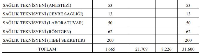 Sağlık Bakanlığı taşra teşkilatı hizmet birimlerinde istihdam edilmek üzere 31.600 sözleşmeli sağlık personeli alımı yapılacak.
