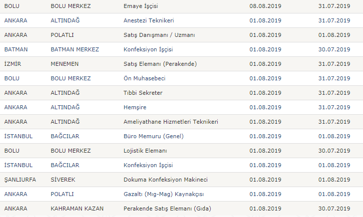 GÜNCEL İŞKUR İŞ İLANLARI