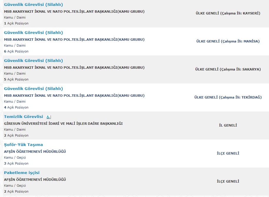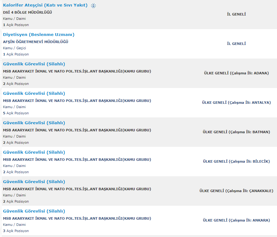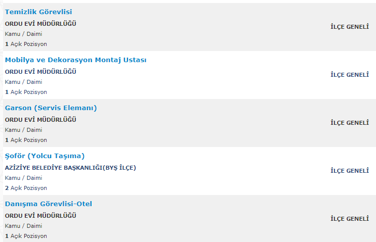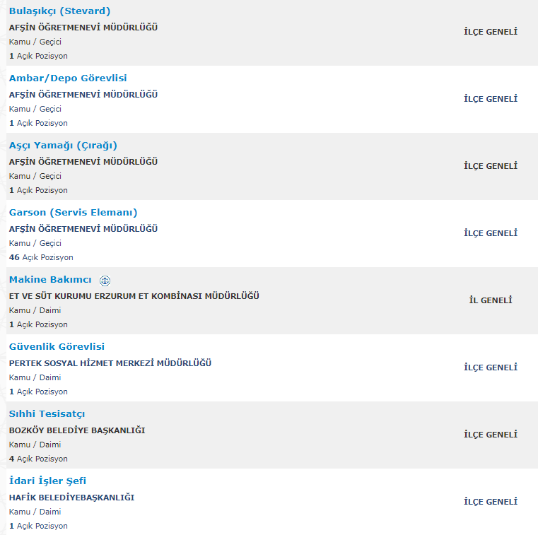 İŞKUR kamu ilanlarında kadrolara şu şekilde yer verildi: