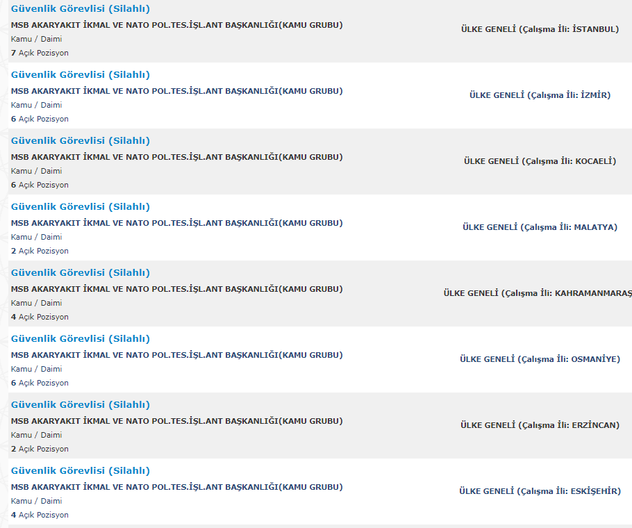 Son olarak iş arama sayfası çıkacak. Burada sadece İŞYERİ TÜRÜ yazan kısımda KAMU seçeneğini işaretleyin ve ARA butonuna tıklayın. İlanlar aşağıda sıralanacaktır.