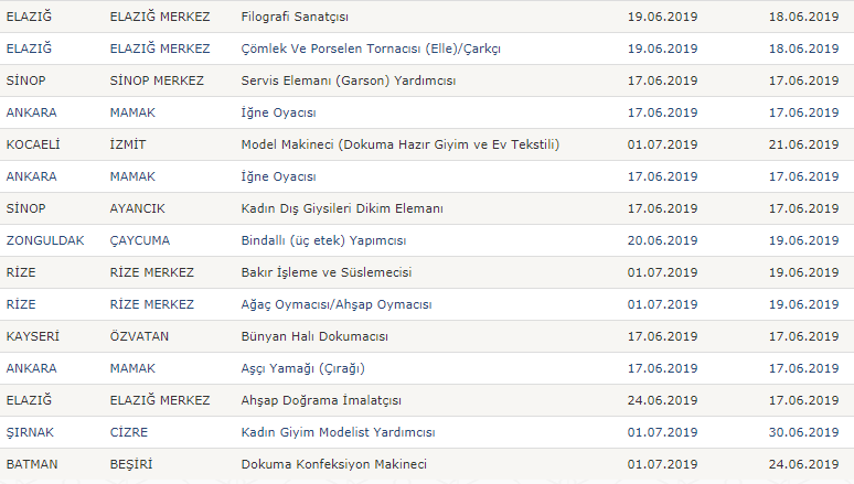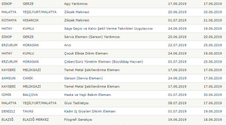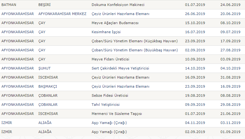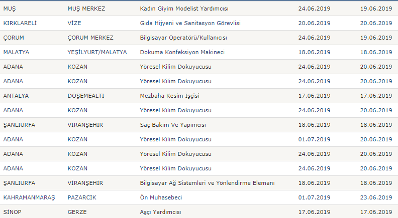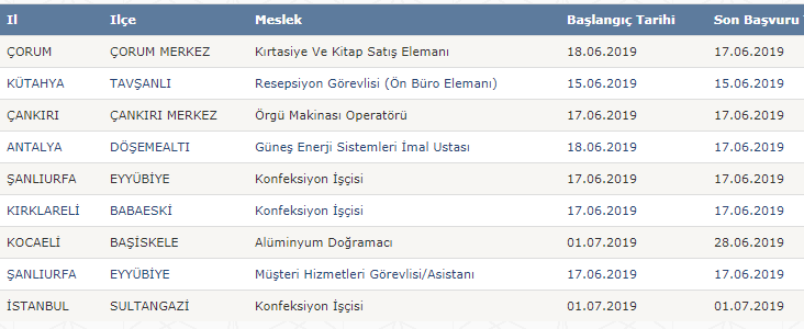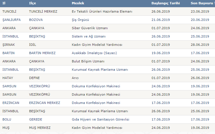 Türkiye İş Kurumu resmi internet sayfasında art arda yeni ilanlar yayımlandı. İşbaşı eğitim kursu ve mesleki eğitim kursu kapsamında yapılan personel alımlarında , farklı şehirlere alım yapıldığı bildirildi.