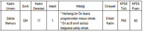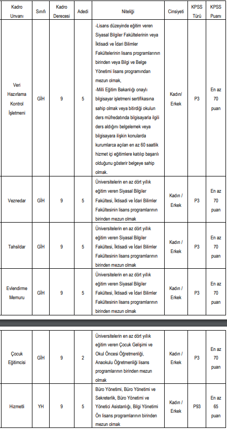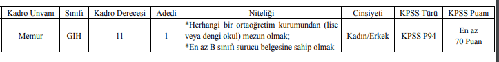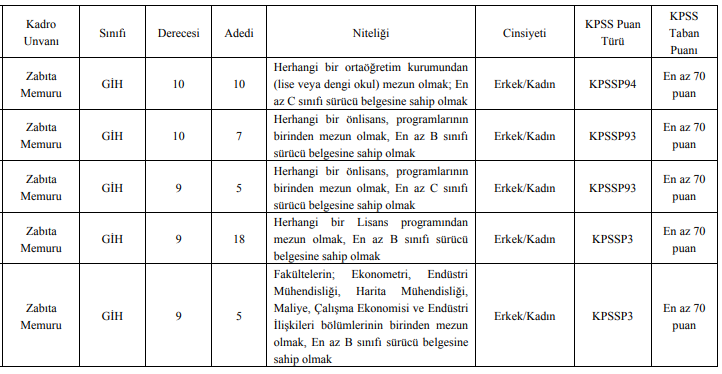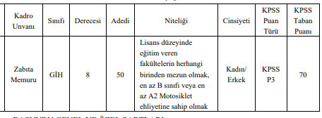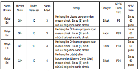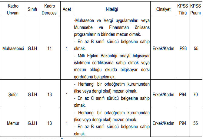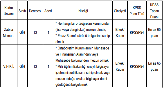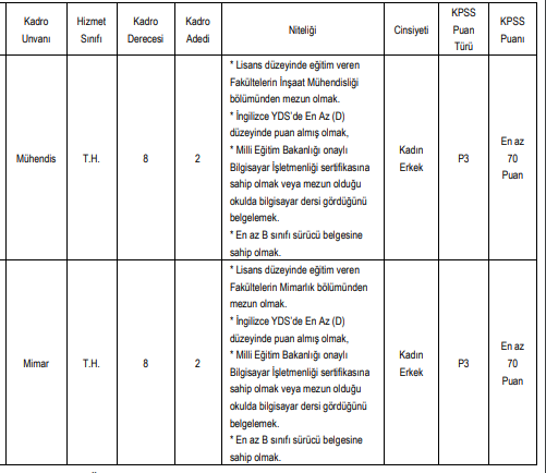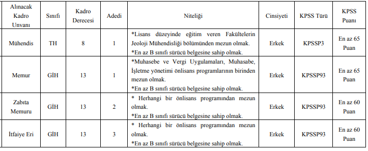 ALIM YAPILAN KADROLAR, BELEDİYELER, BAŞVURU TARİHLERİ VE İLAN DETAYLARI