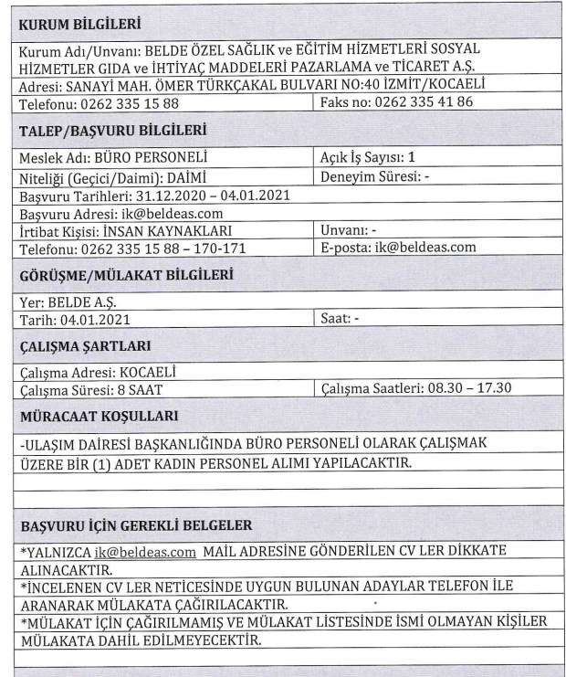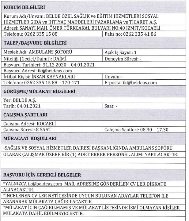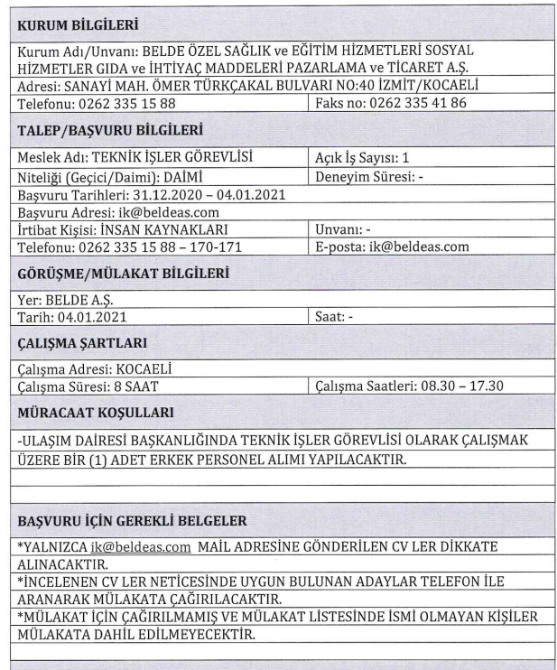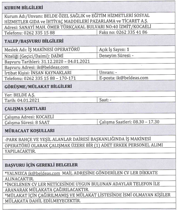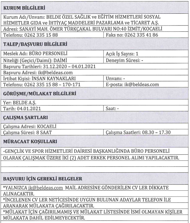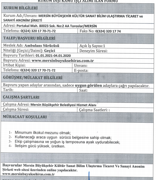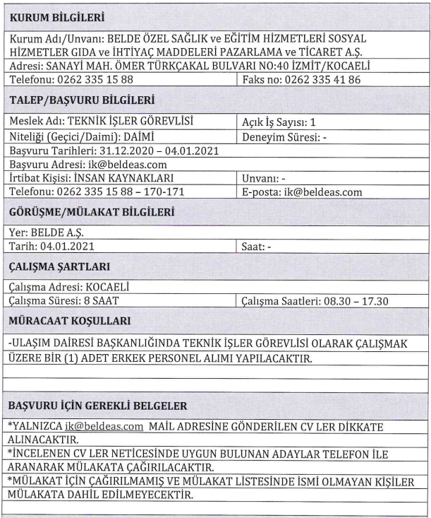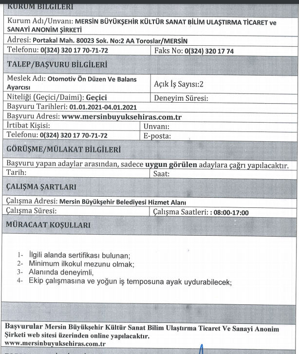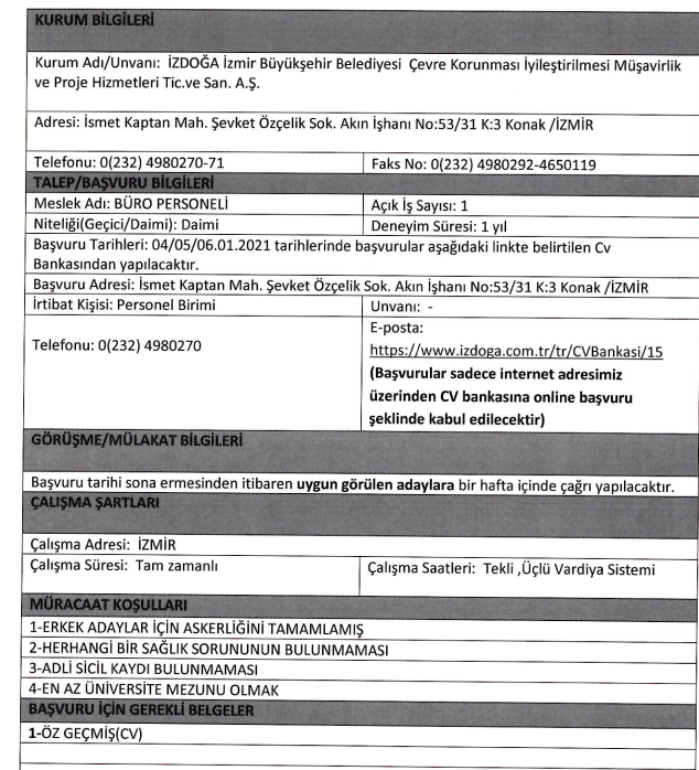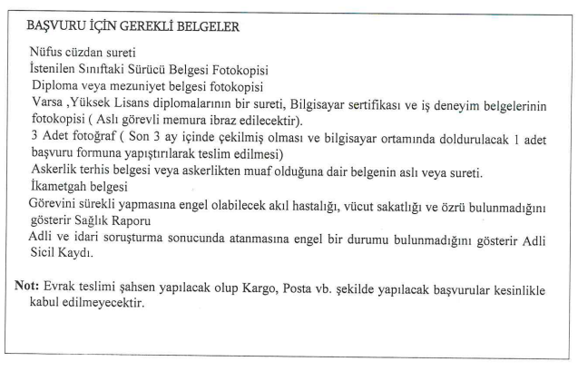 İlanlara başvuru yapacak adayların aşağıdaki şartları taşıması gerekmektedir:
