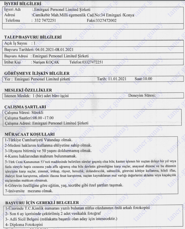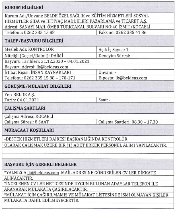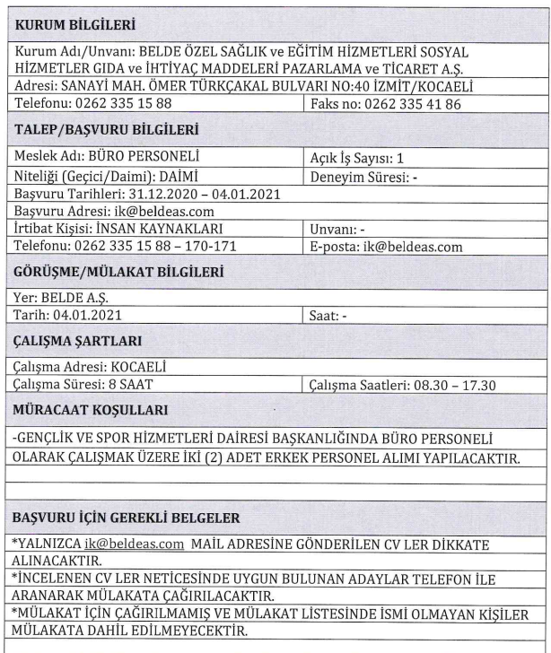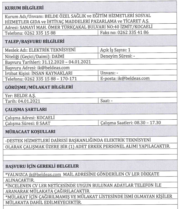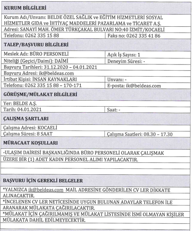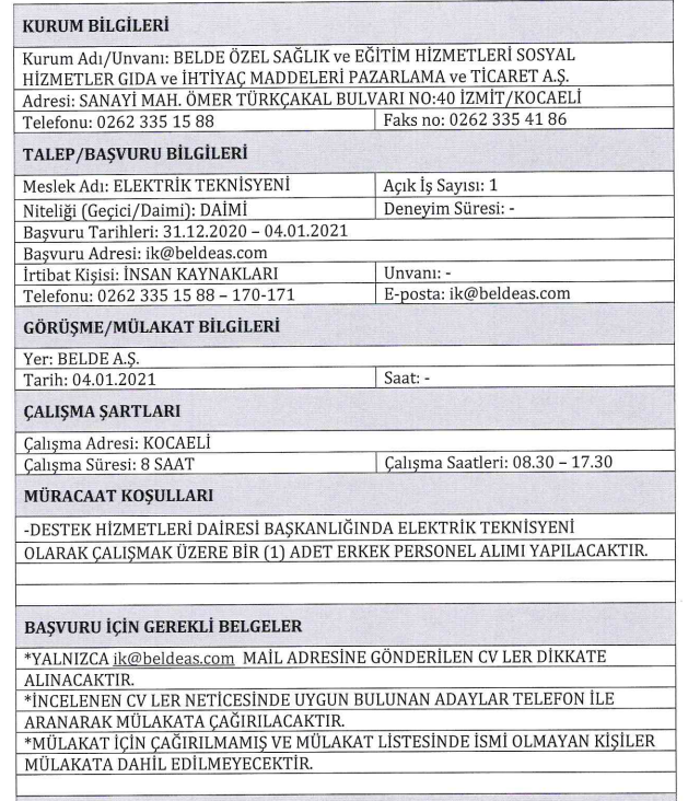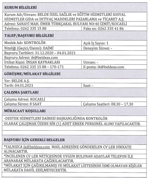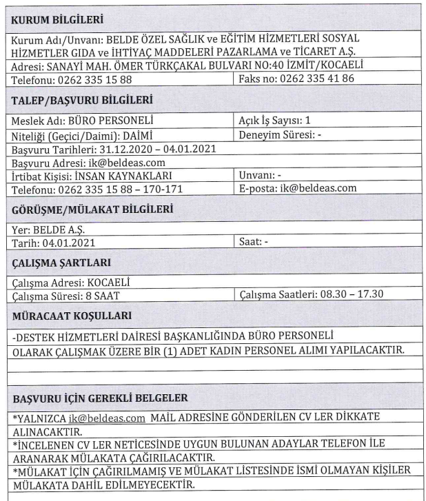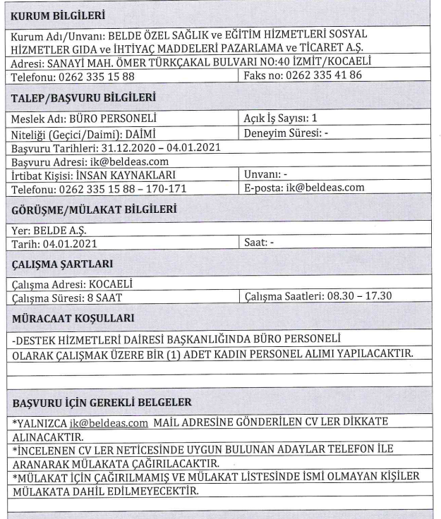 İlanlara başvuru yapacak adayların aşağıdaki şartları taşıması gerekmektedir: