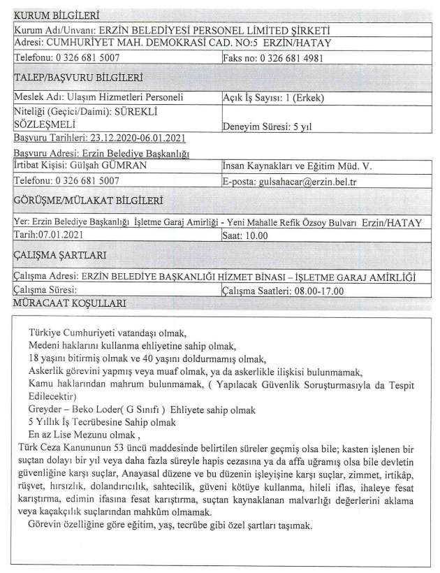 İŞKUR üzerinden art arda duyurular yayımlandı. Yayımlanan duyurularda en az ilkokul mezunları arasından personel alımı yapılacağına yer verildi. Belediyeler bünyesine yapılan kamu personeli alımlarının başvuruları başladı. Biz de Kamu Bülteni olarak bu yazımızda belediyeler ile belediye kamu şirketleri bünyesine yapılan personel ve işçi alımlarının başvuru bilgilerine yer verdik.
