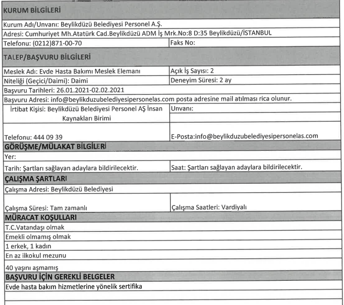 Farklı illerde belediye başkanlıkları bünyesine en az ilköğretim mezunu adaylar arasından personel, memur ve işçi alımı yapılacağı açıklandı. Sınavsız yapılan personel alımında başvuruya ilişkin detaylar yazımızda.