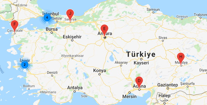 Akbank kariyer sayfası aracılığıyla yayımlanan duyuruda alım yapılacak şehirler harita üstünde şu şekilde verildi: