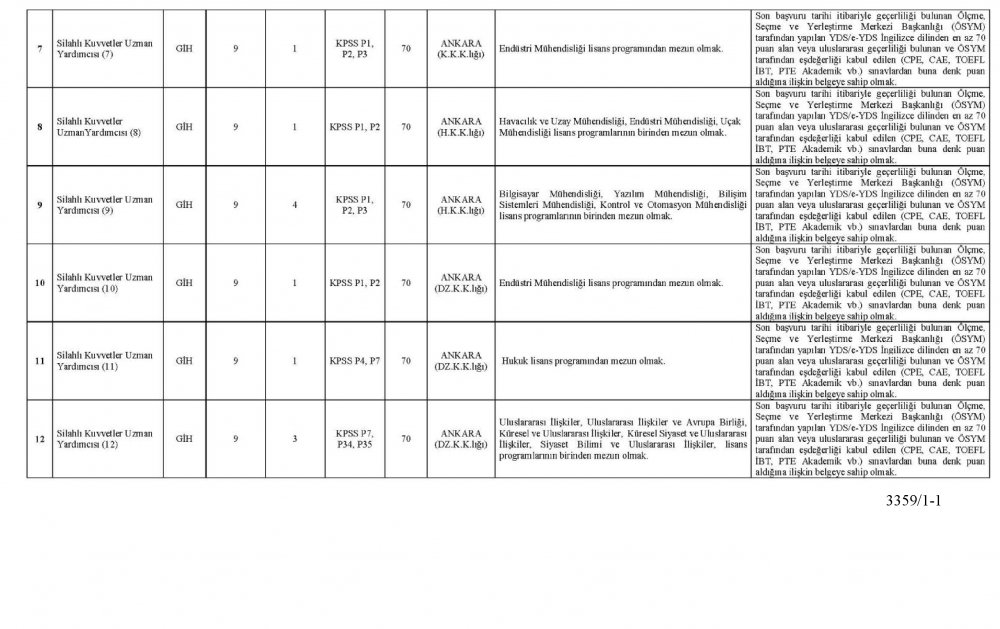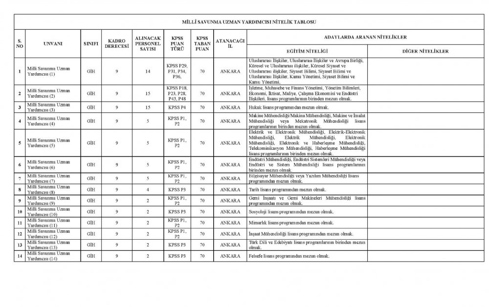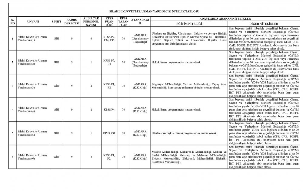 Milli Savunma Bakanlığı Genelkurmay Başkanlığı ve Kuvvet Komutanlıklarında istihdam edilmek üzere uzman yardımcısı alımı yapacak.