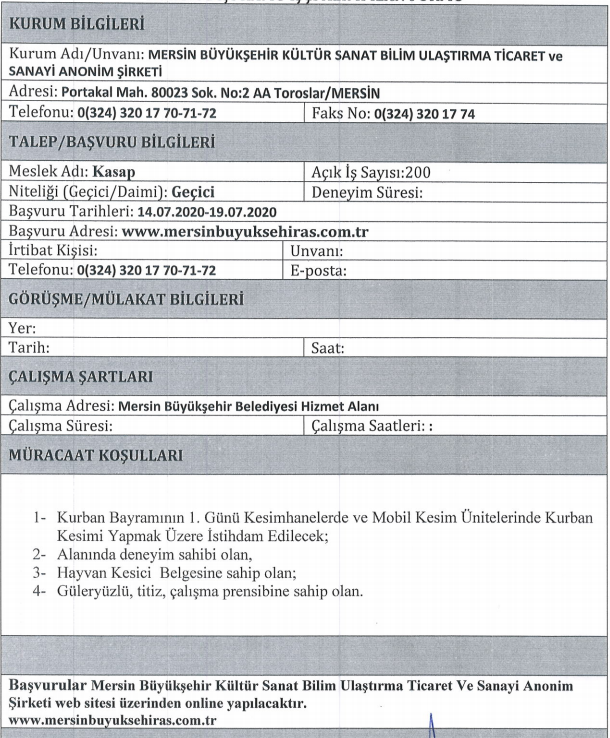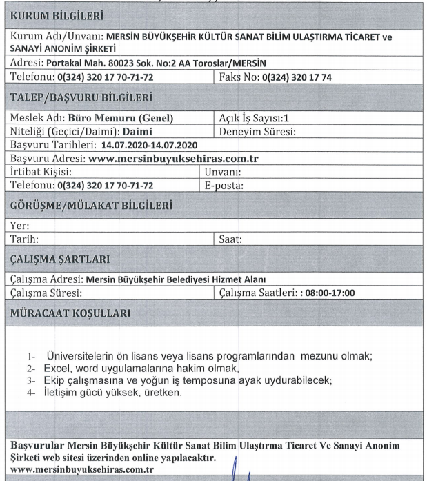 Kamu ilan sayfası üzerinden yayımlanan duyurularda başvuru genel şartlarına şu şekilde yer verildi: