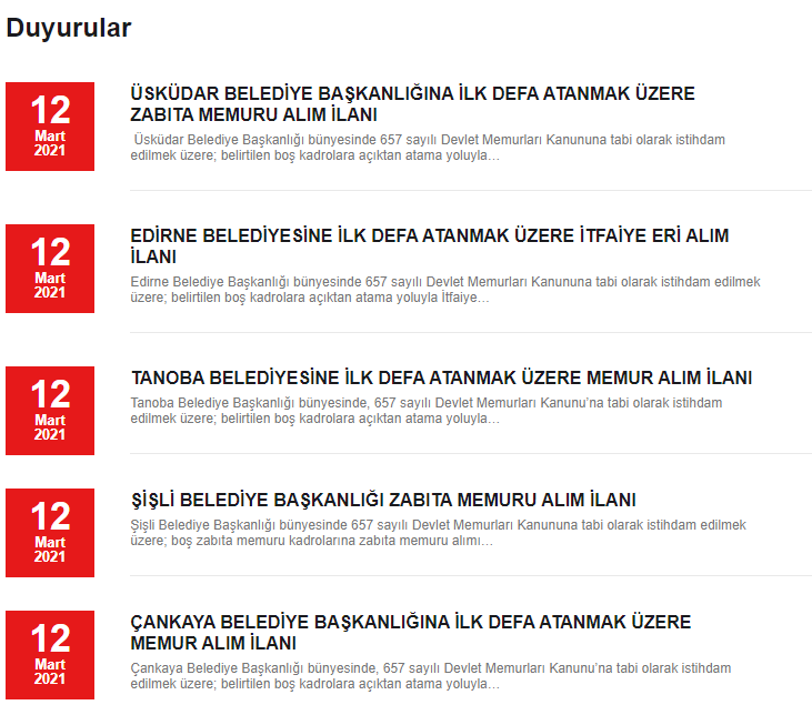 Bugün yayımlanan belediye memur alımı ilanları şu şekilde:
