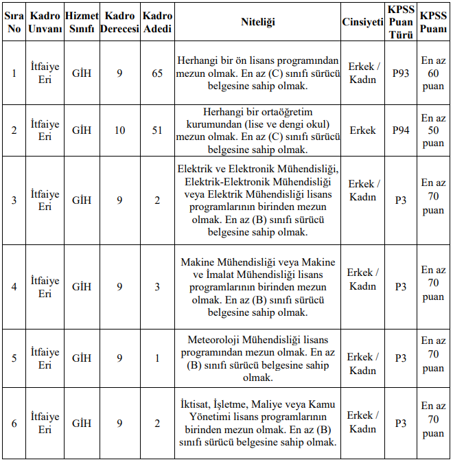 - İlgili alıma göre en az B sınıfı veya C sınıfı ehliyete sahip olmak