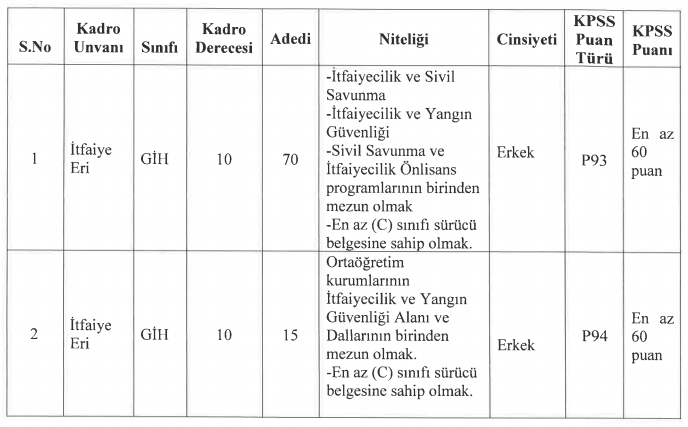 Belediye iş ilanlarına bir yenisi daha eklendi. Bursa Büyükşehir Belediyesi toplanda 85 itfaiye eri alımı yapacağını duyurdu. Lise, ön lisans mezunlarının başvuru yapabileceği kadrolar için 2020 KPSS’nin ilgili puan türünden en az 60 puan almak gerekiyor.