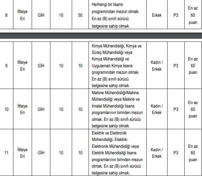 Buna göre İBB'ye başvuru genel ve özel şartlarını getiren adaylardan kadın-erkek itfaiye eri alımları yapılacak. Adaylarda aranacak genel şartlar ile kontenjan dağılımı aşağıdaki gibi oldu: