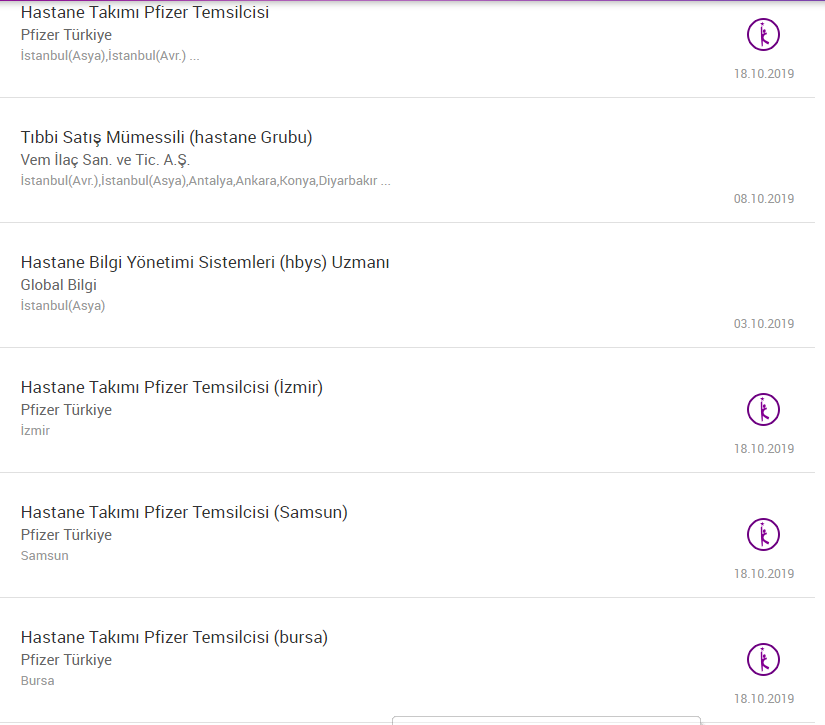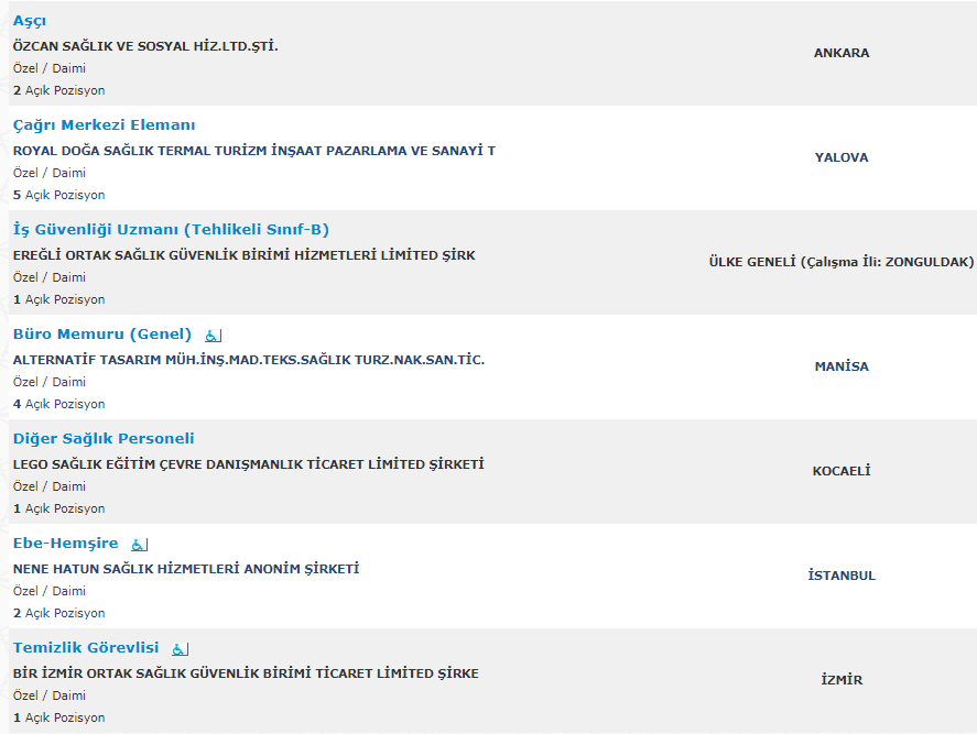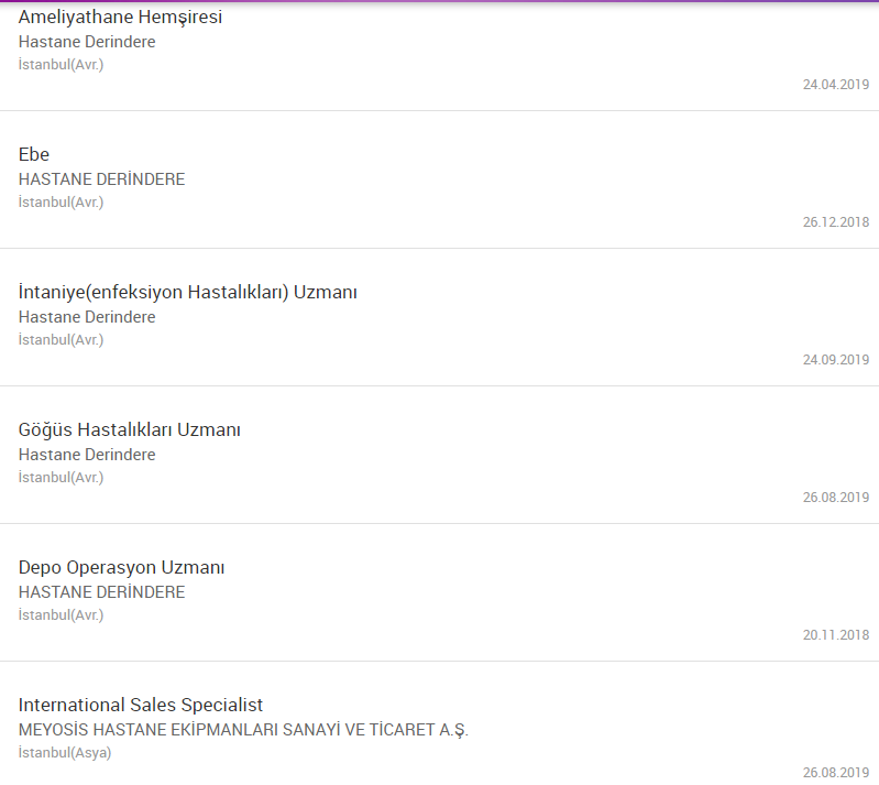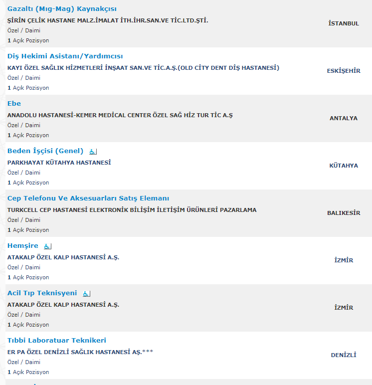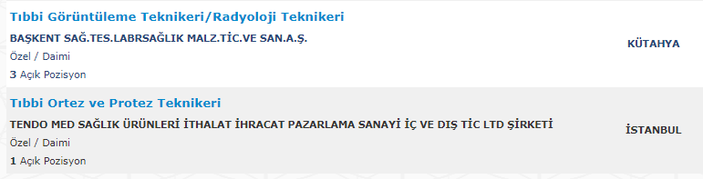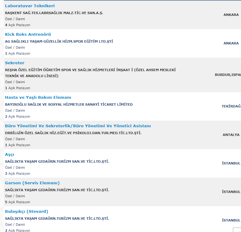 Bir iş ilanı sayfasından yayımlanan ilanlar şu şekilde;