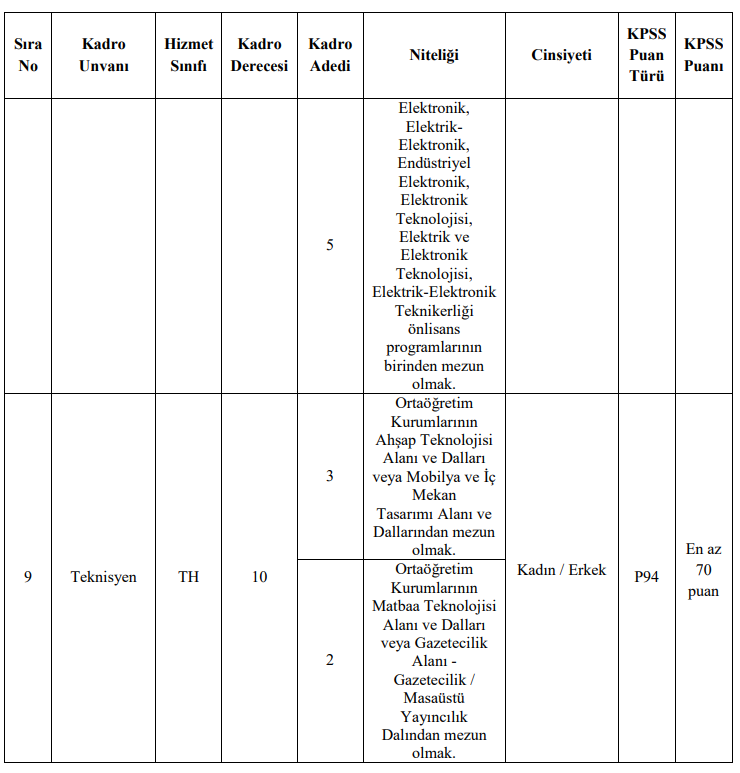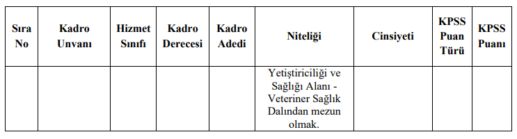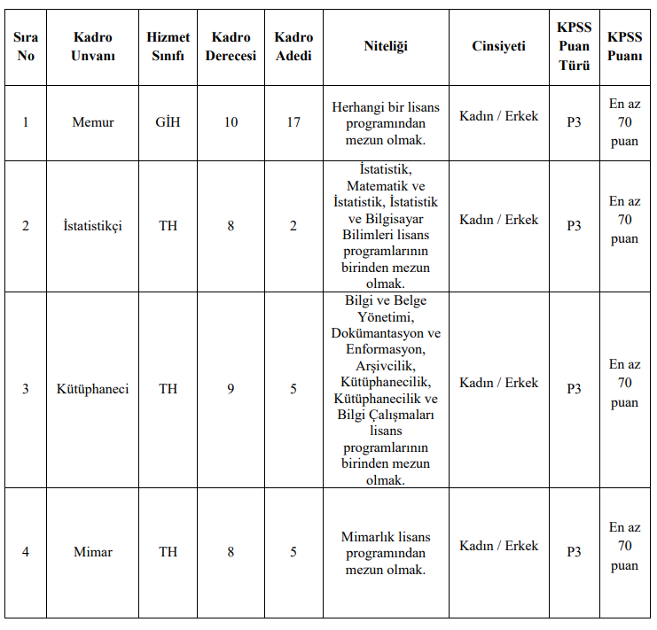 Alım Yapılacak Kadrolar ve Nitelikleri