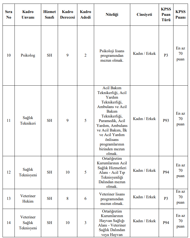 - İlan edilen memur kadroları için, mezun olunan okul itibariyle öğrenim şartlarını taşımak ve bu öğrenimle ilgili olarak 2020 KPSS (B) grubu sınavına girmiş olmak ve alım yapılacak kadroların karşısındaki puan türünden, yukarıdaki tabloda belirtilen asgari KPSS puanını almış olmak,