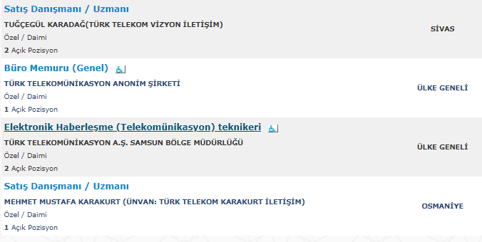 İlan İŞKUR'da: Türk Telekom Personel Alımı (Büro Memuru, Satış Tanışmanı, Tekniker)