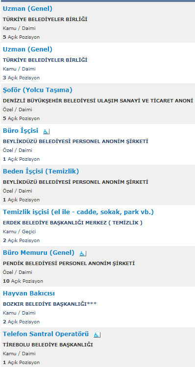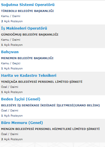 Belediyeler ile belediyelere bağlı şirketler, Türkiye İş Kurumu resmi sayfası aracılığıyla ilan yayımladı.