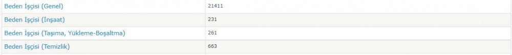 - Beden İşçisi (Taşıma, Yükleme-Boşaltma) 261 Kişi