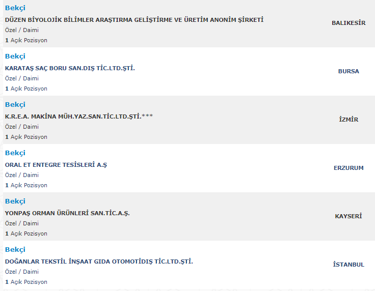 İŞKUR üzerinden yayımlanan bekçi alımlarına baktığımızda, özel kuruluşlara 42 adet bekçi alımı yapılacağı bildirildi. İşte o ilanlar: