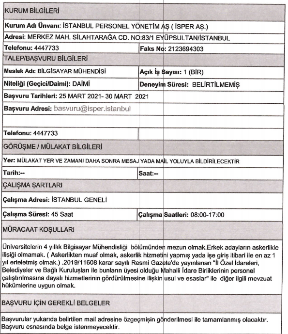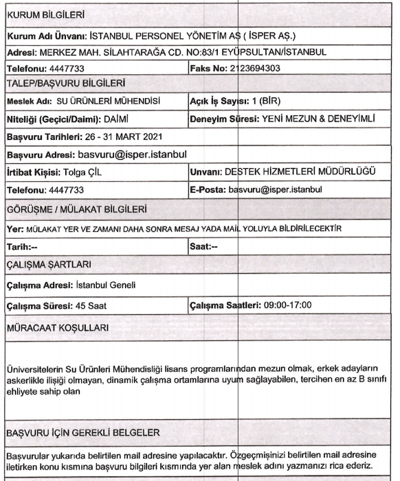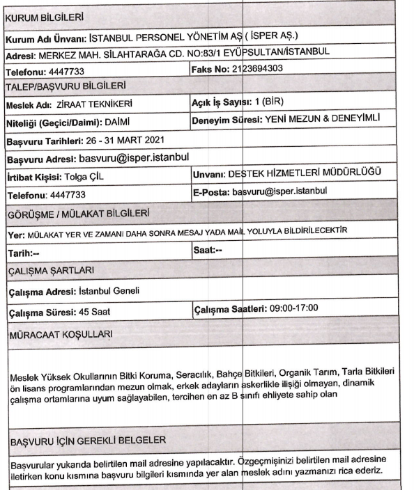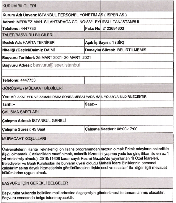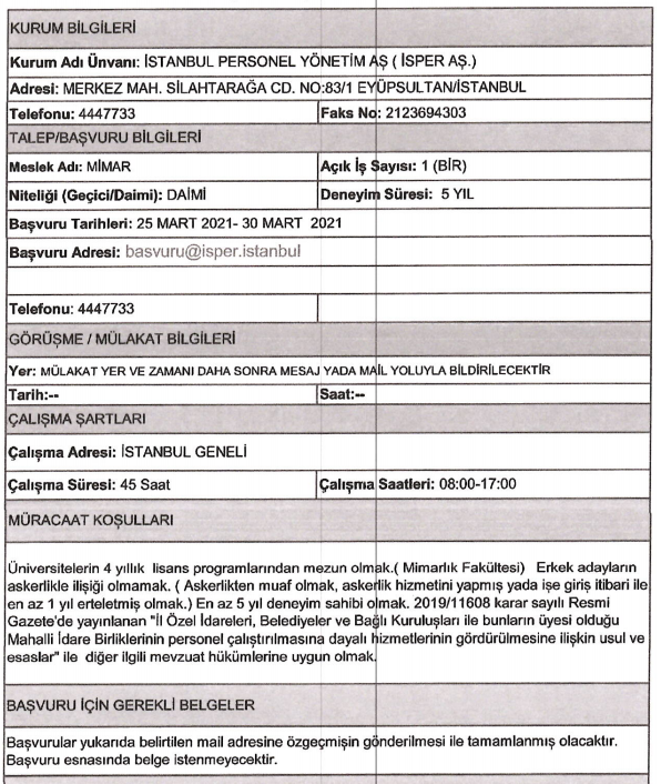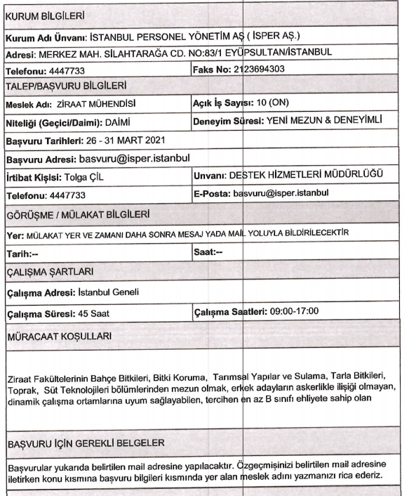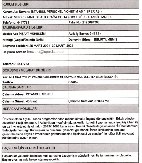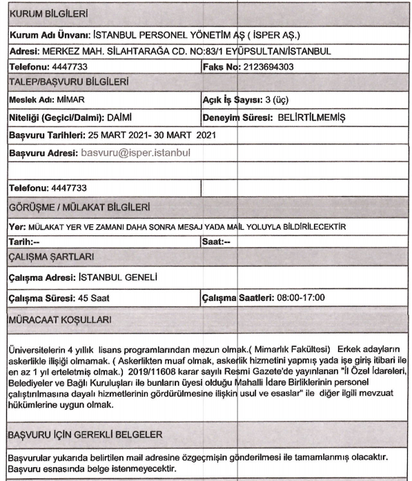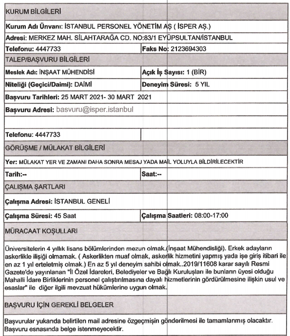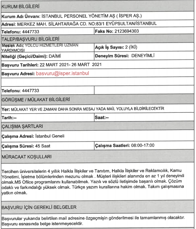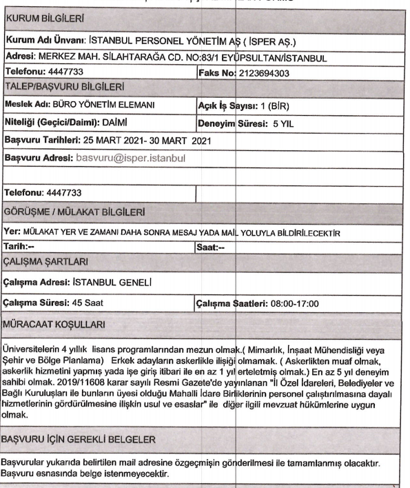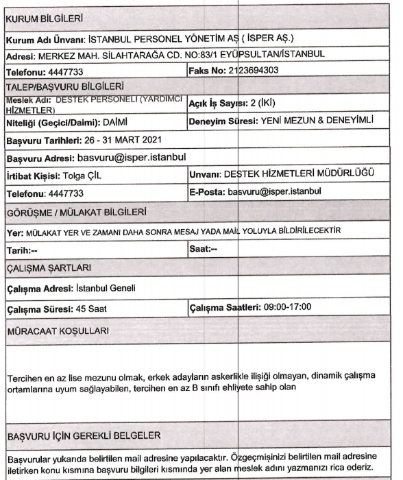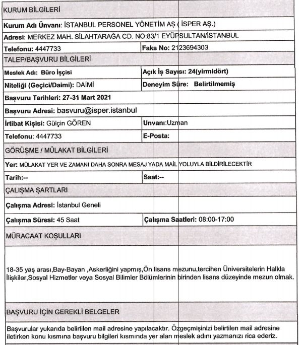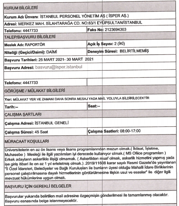 Son dakika : İSPER'e personel alınacak.