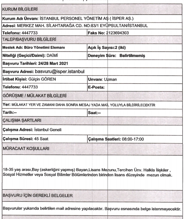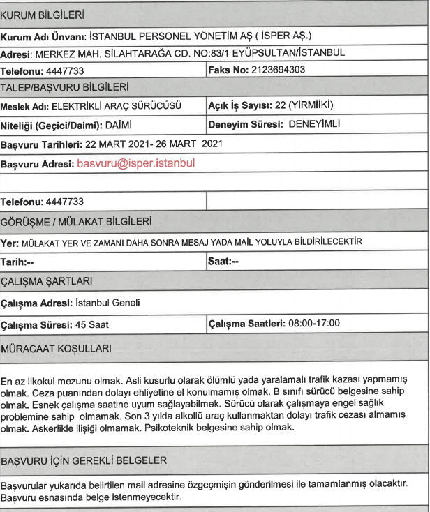 İSPER'den art arda personel alımı aççıklamaları geldi. İŞKUR 'da yayımlanan duyurularda en az ilkokul mezunlarından KPSS şartı aranmadan personel alımı yapılacağı görüldü. İlanlara başvurular başladı.