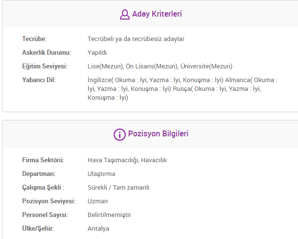 Havayolu şirketi tarafından yayımlanan duyuruda , başvuru yapmak isteyen adayların müracaatlarını kariyer sayfası üzerinden yapması gerektiğine yer verildi.