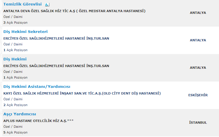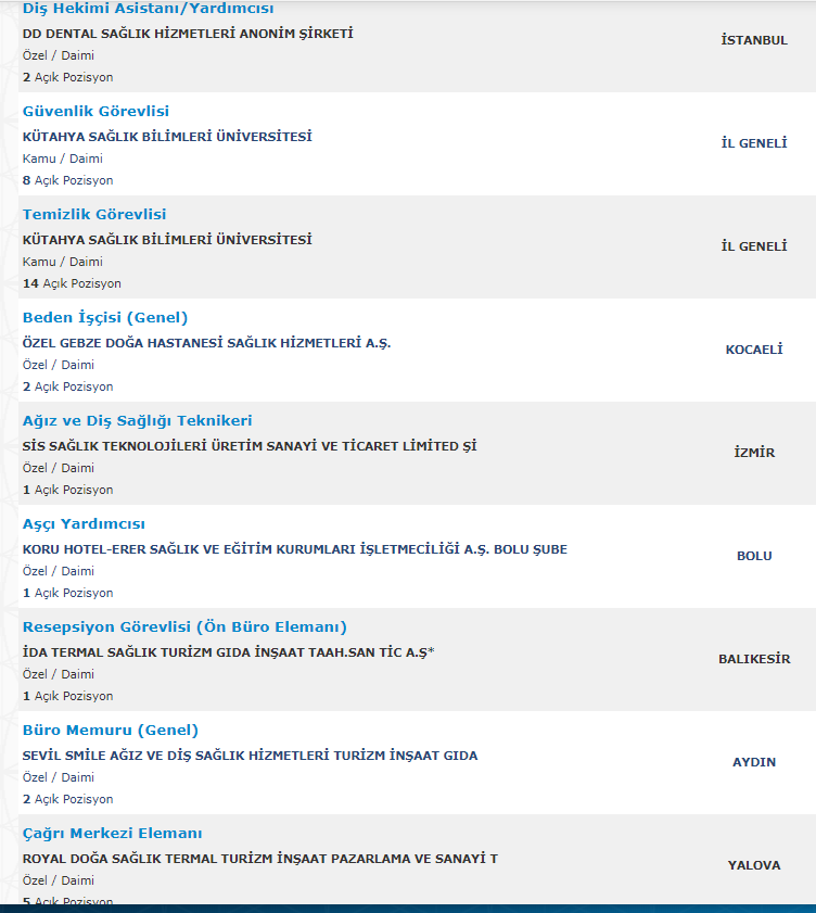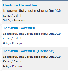 Türkiye İş Kurumu internet sayfasında yaynlanan ilanlarda alım yapılan pozisyonlara şu şekilde yer verildi:
