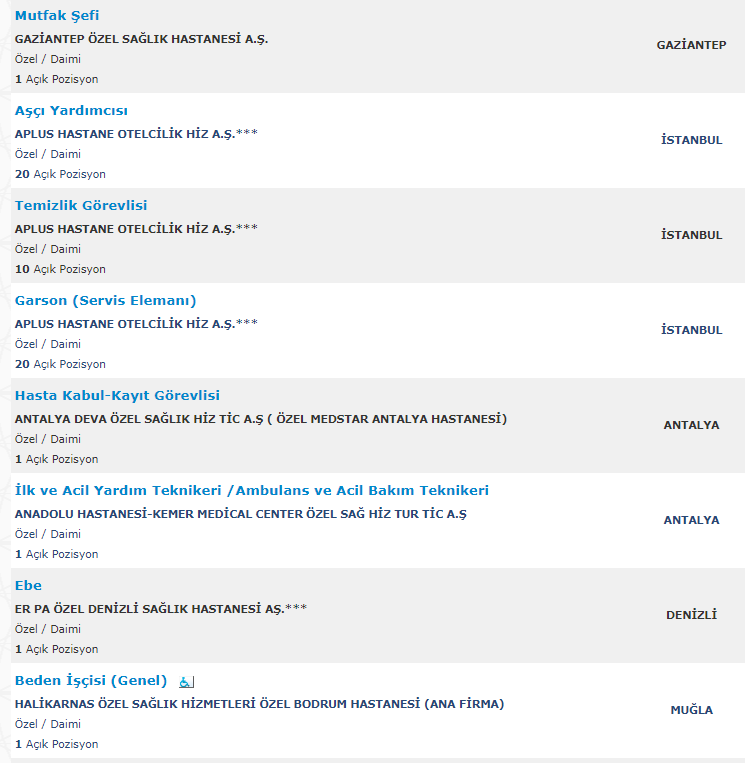 İŞKUR 'dan Türkiye genelindeki bazı özel hastanelere yapılan personel alımında başvurular devam ediyor. Başvuru yapacak adayların aşağıdaki genel şartları taşıyor olması gerekiyor.