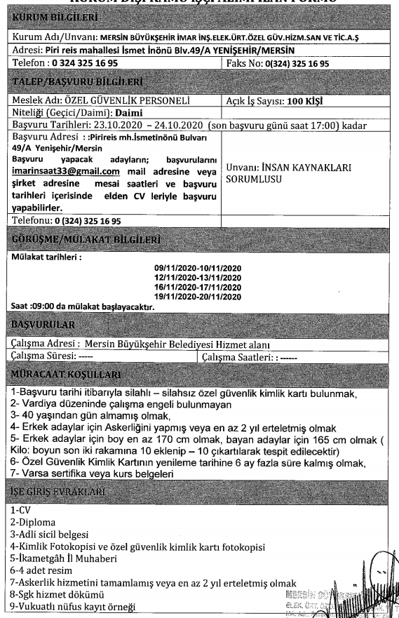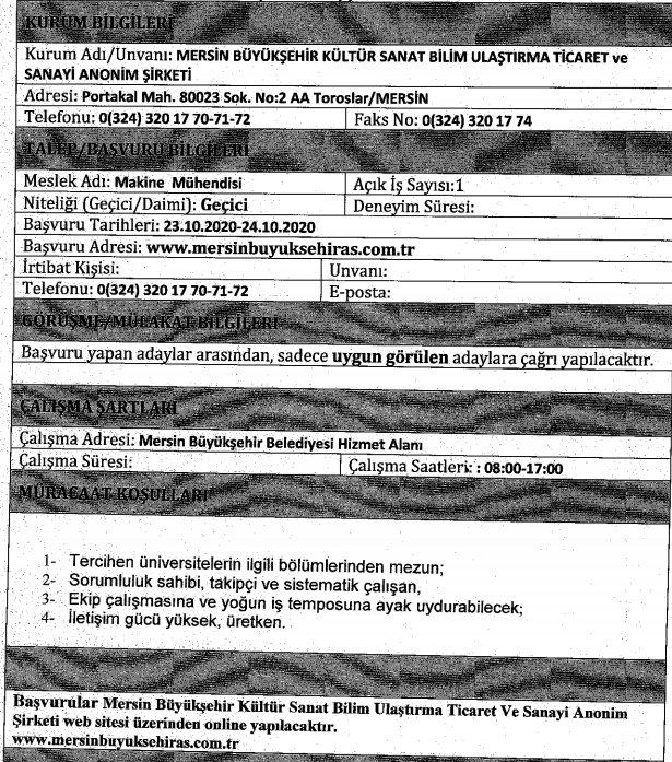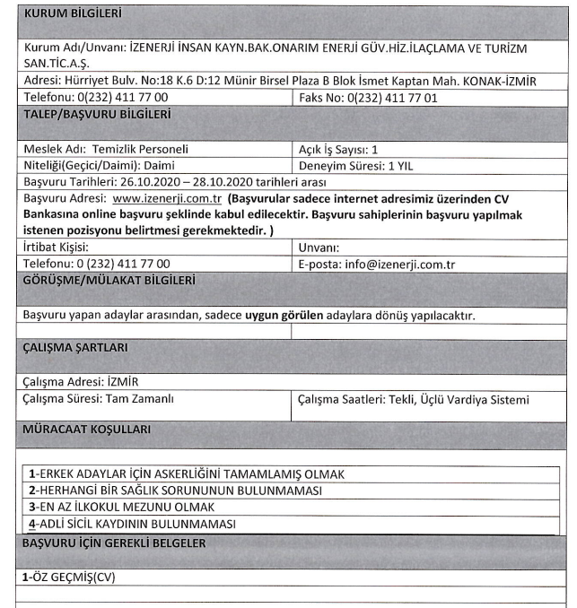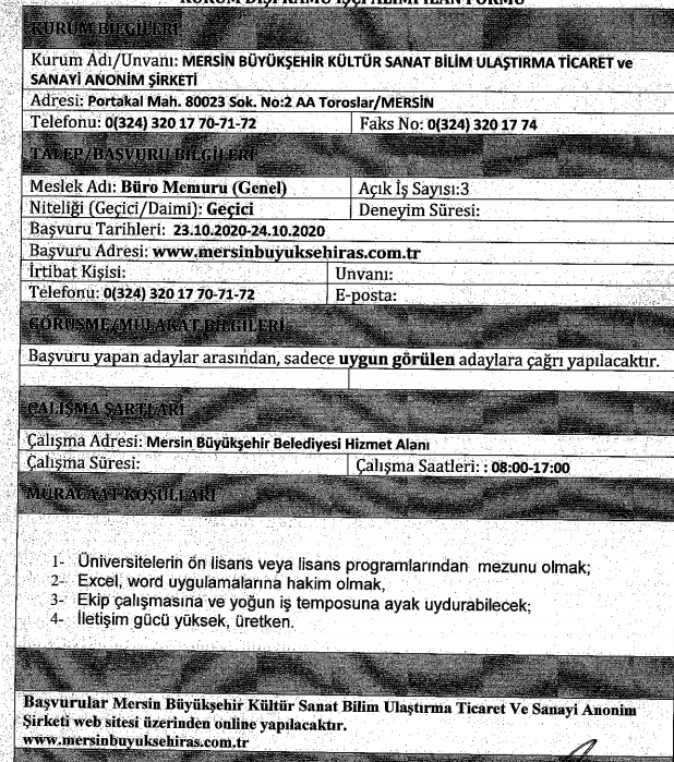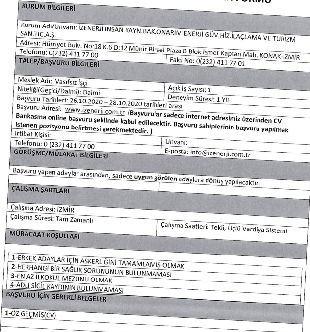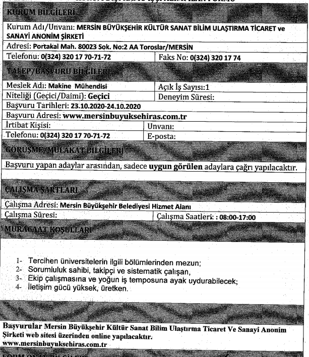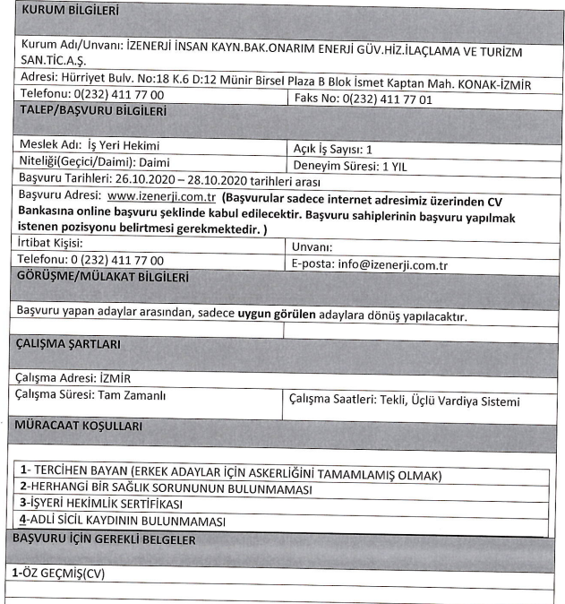 İlana başvuru yapacaklarda aranan özel şarlar ve ilan metinleri şu şekilde: