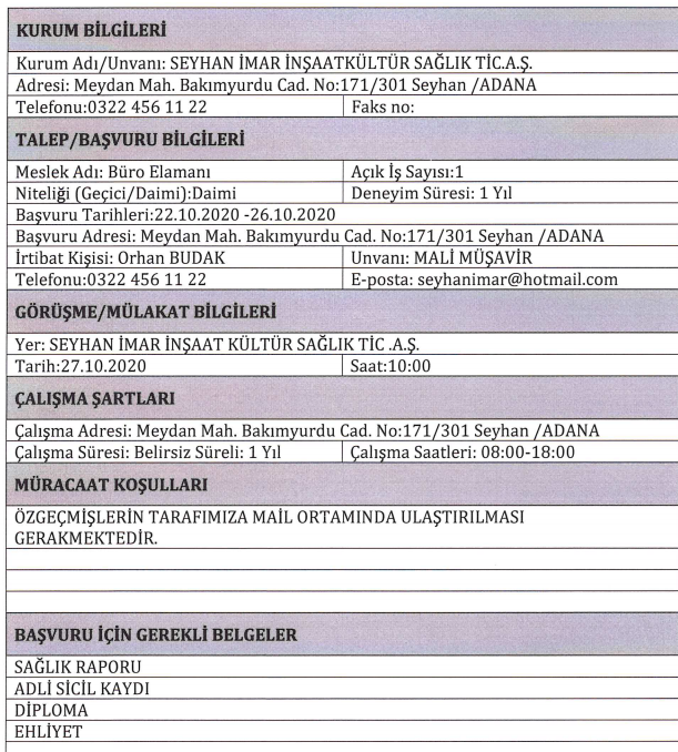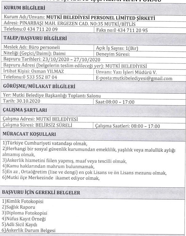Kamuya 3-4 Bin TL Maaşla Büro Memuru, Şoför, Güvenlik Görevlisi ve Personel Alımı Yapılacak
