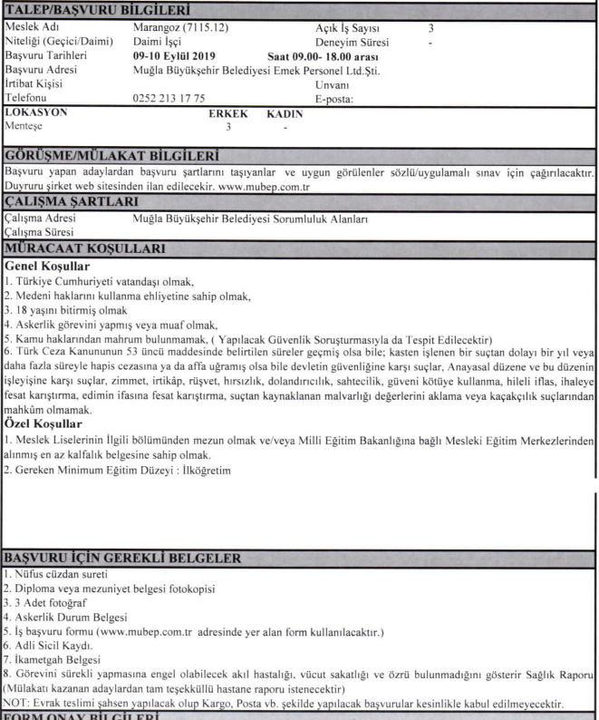 Muğla Büyükşehir Belediyesi tarafından yayımlanan ilanda 78 güvenlik görevlisi alınacağına yer verildi.