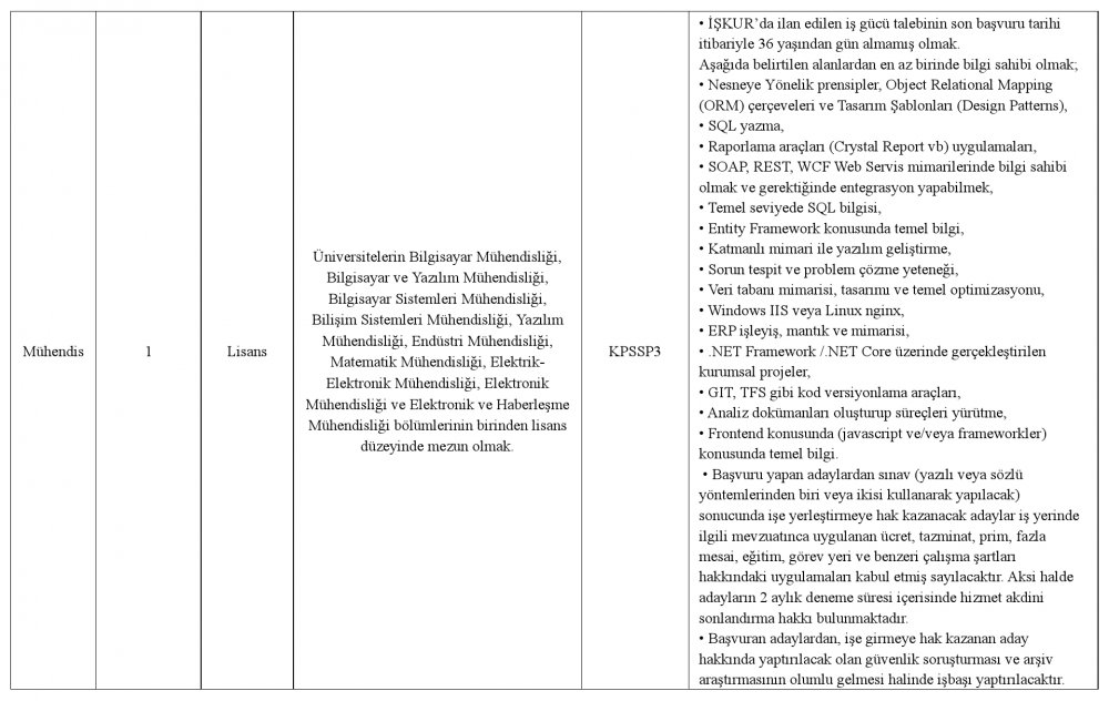 İlanlara Başvurular Türkiye İş Kurumu Üzerinden Yapılacaktır.