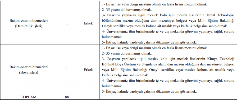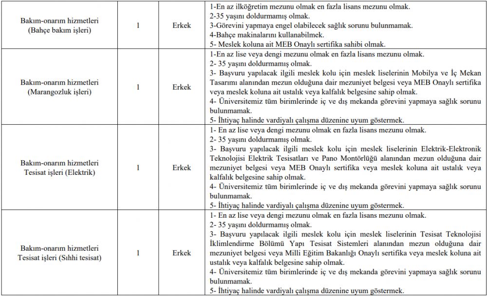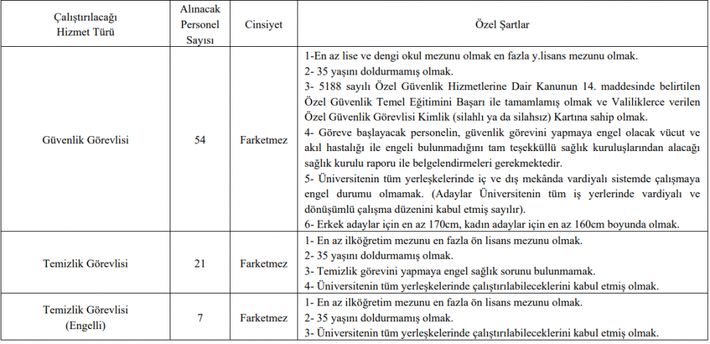 Mimar Sinan Güzel Sanatlar Üniversitesi Rektörlüğü tarafından yayımlanan ilanda en az ilkokul mezunları arasından temizlik personeli, güvenlik görevlisi ve bakım onarım hizmetleri personeli kadrolarına alım yapılacağı görüldü.