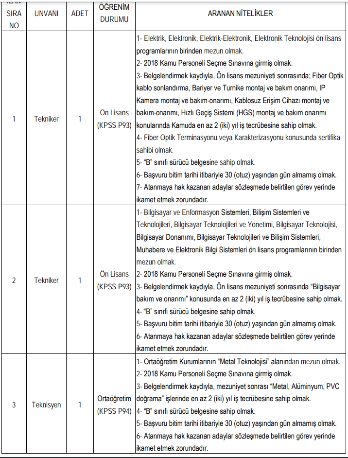 İlanın başvuru özel şartları ve kadro dağılımı şu şekilde: