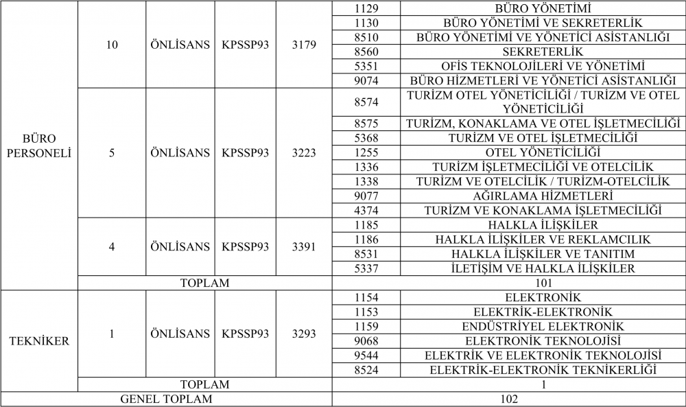 - 2018 yılı KPSS (B) grubu Önlisans KPSSP93 puan türünden en az 60 puan almış olmak,