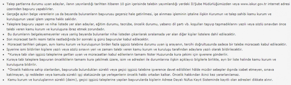 İlana başvurular İŞKUR internet sayfası aracılığıyla yapılmaktadır. Başvuru yapmak isteyen adayların müracaatlarını aşağıdaki bağlantı adresi üzerinden yapması gerekmektedir. İŞKUR girişi yaptıktan sonra aşağıdaki bağlantıyı yeni sekmede açın. Açılan sayfanın en altında başvur kısmı var. İlgili personel alımına oradan başvuru yapabilirsiniz.