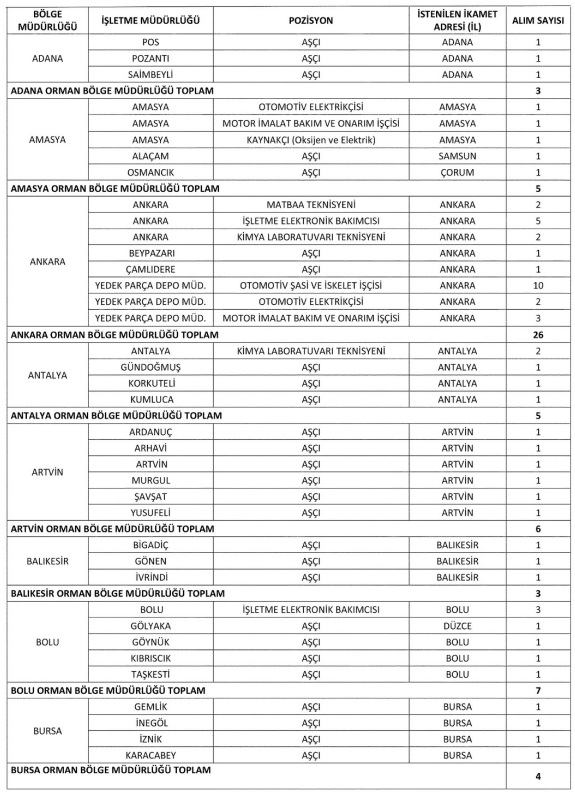 Yayımlanan ilanda 28 farklı şehirde 8 farklı pozisyonda geçici 131 işçi alınacağı belirtildi. Başvurular İŞKUR üzerinden olacak.
